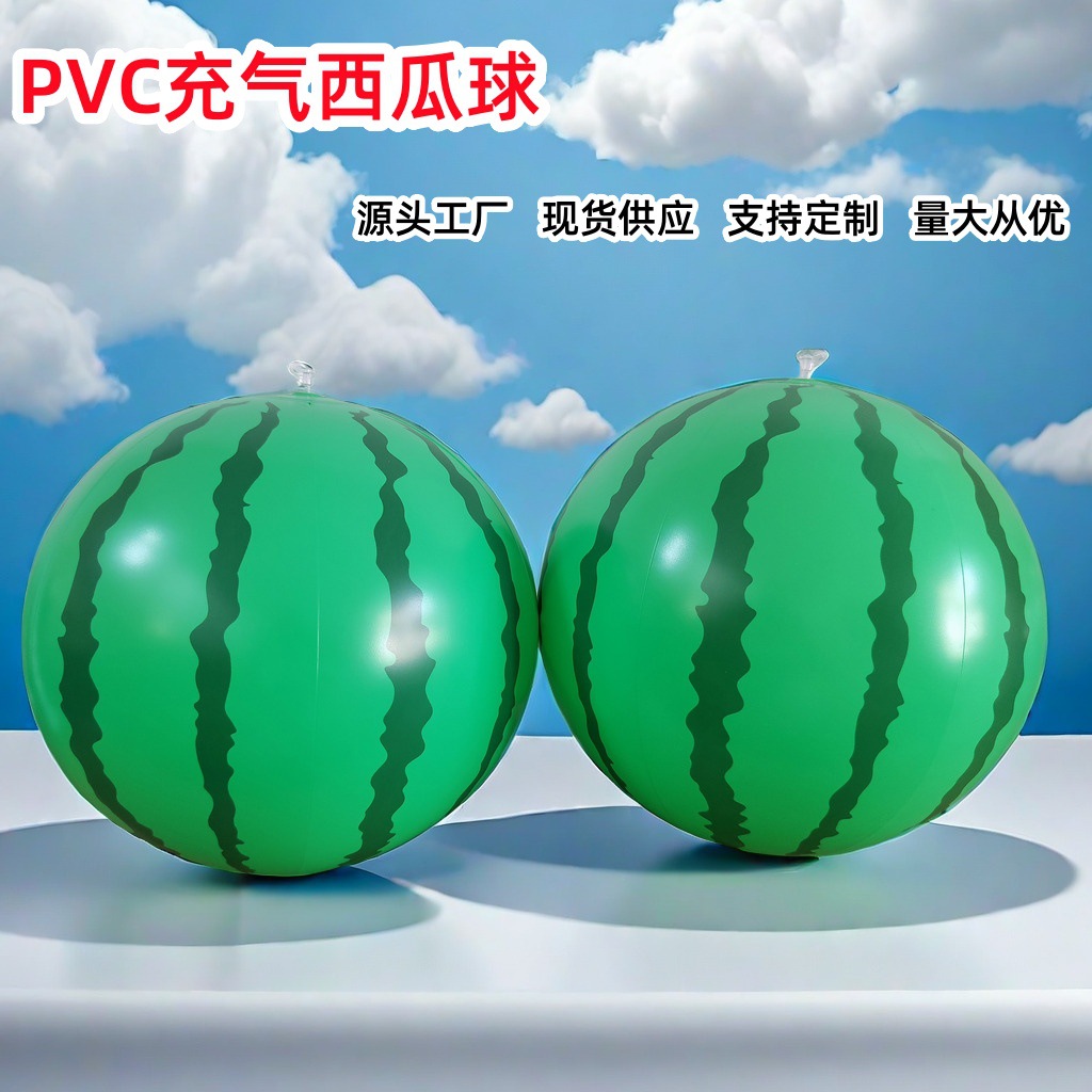 工厂现货PVC充气条纹球仿真玩具西瓜沙滩球40CM圆点充气球跨境热