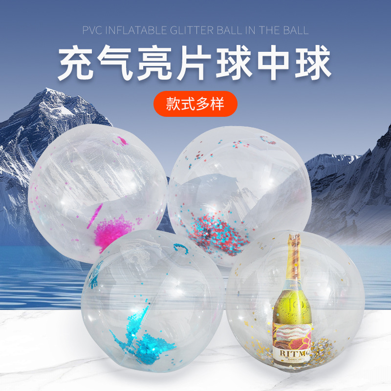 儿童PVC充气亮片球中球 网红拍照道具彩球户外戏水玩具透明沙滩球