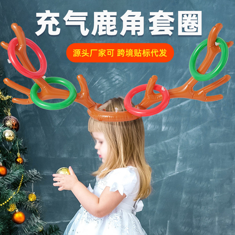 跨境PVC充气鹿角套圈新款充气驯鹿角投掷圈圣诞节派对鹿角帽玩具