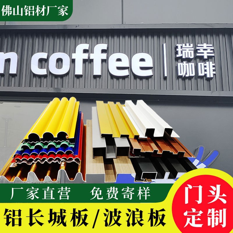 铝合金长城板氟碳凹凸造型铝型材幕墙门头仿木纹波浪板铝合金装饰