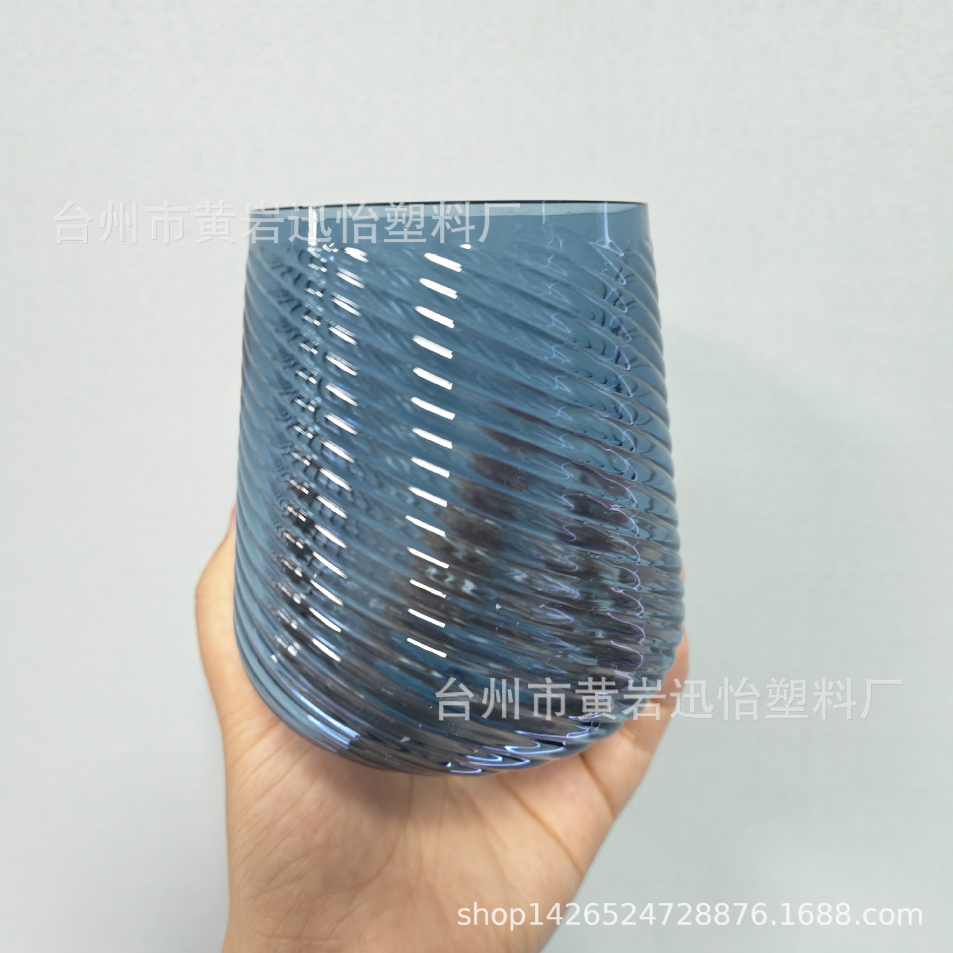 PET材质塑料高脚杯500ml大容量红酒香槟杯一次性杯透明螺纹杯