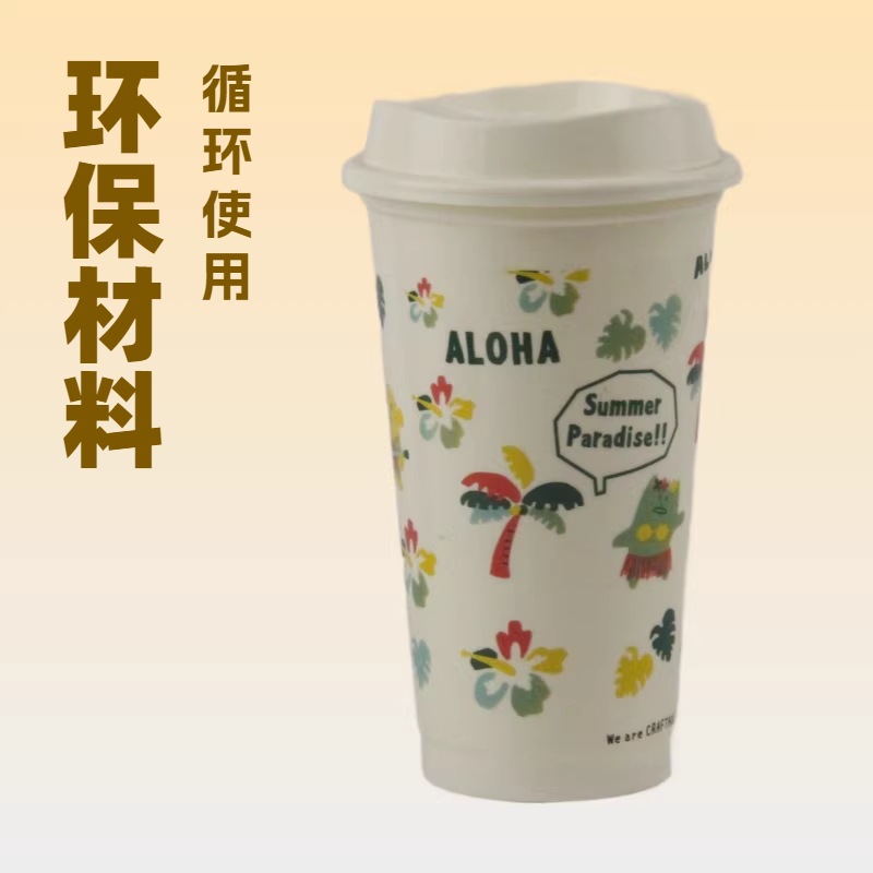 16oz夏威夷风塑料咖啡杯带盖 ALOHA印花500ml便携水杯 可定制LOGO