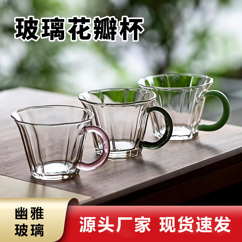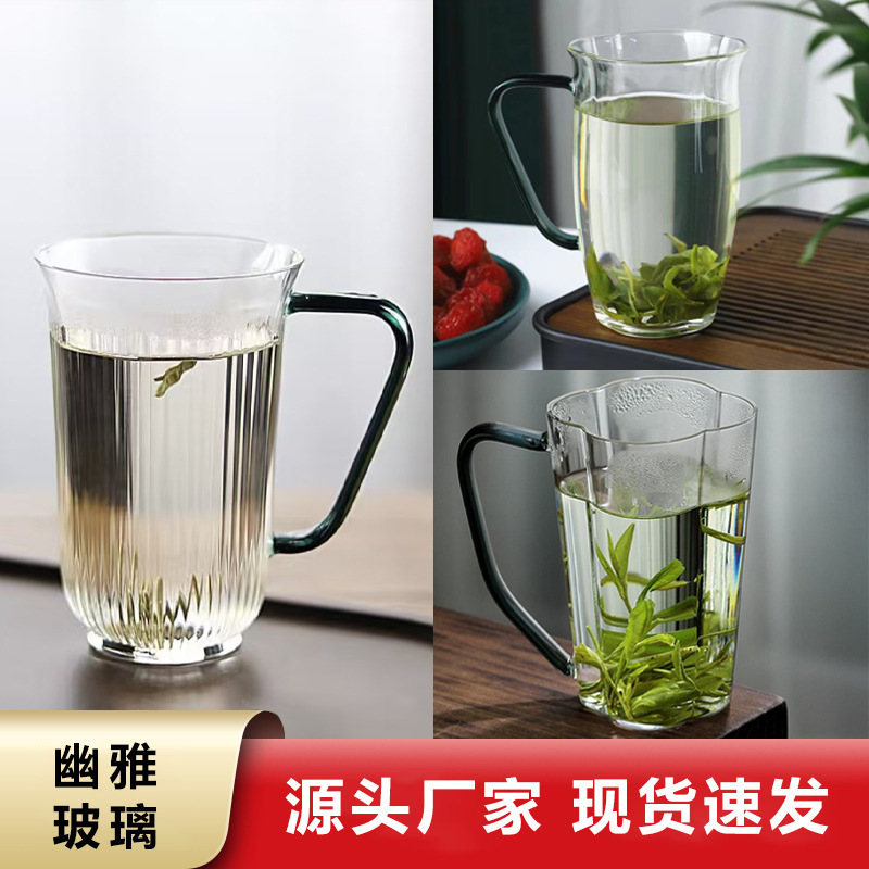 玻璃绿茶杯耐高温日式带把泡茶杯水杯家用杯子高颜值办公杯绿茶杯