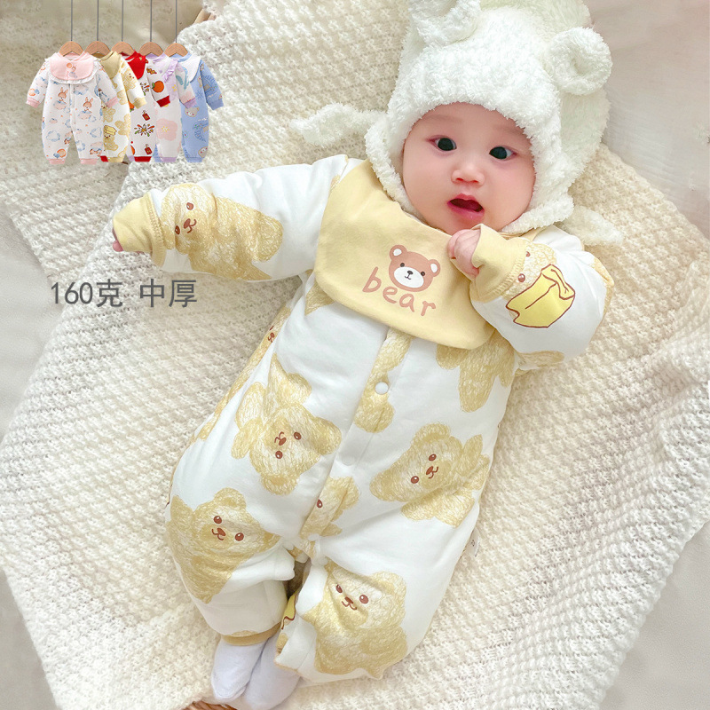 婴儿衣服秋冬加厚夹棉宝宝连体衣哈衣儿棉衣棉服冬季外出服
