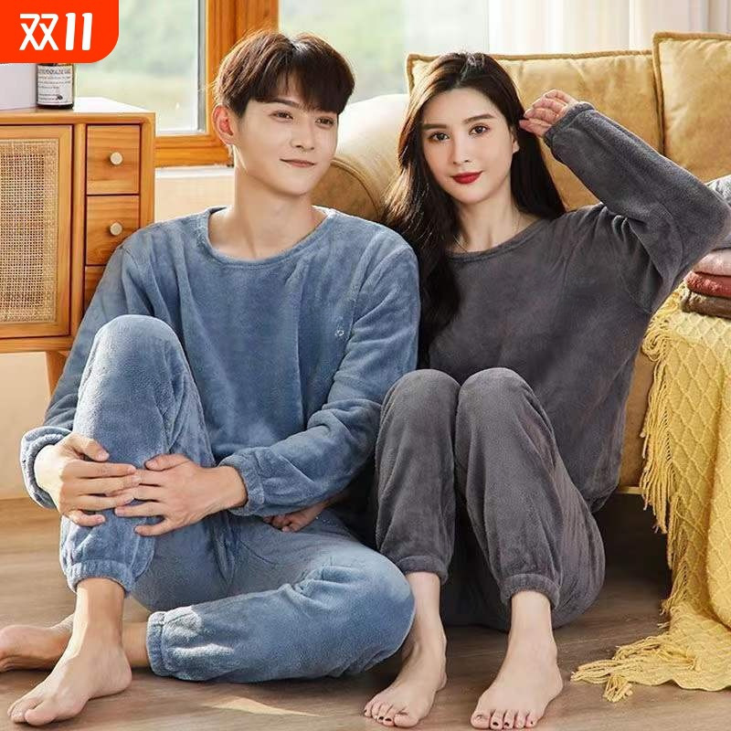 睡衣女秋冬季珊瑚绒法兰绒暖暖套装2025年新款加厚大码情侣家居服