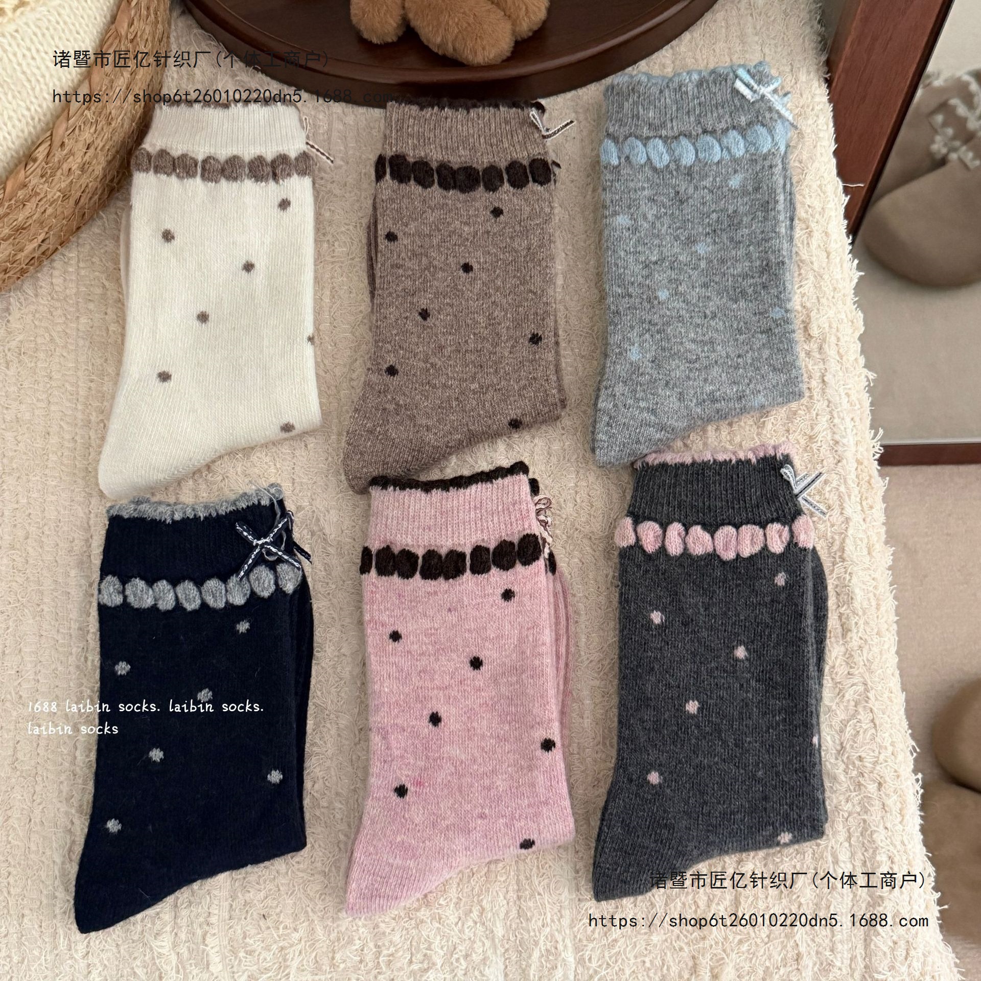 无骨羊毛波点miu系双层泡泡花苞蝴蝶结中筒袜秋冬保暖日系堆堆袜