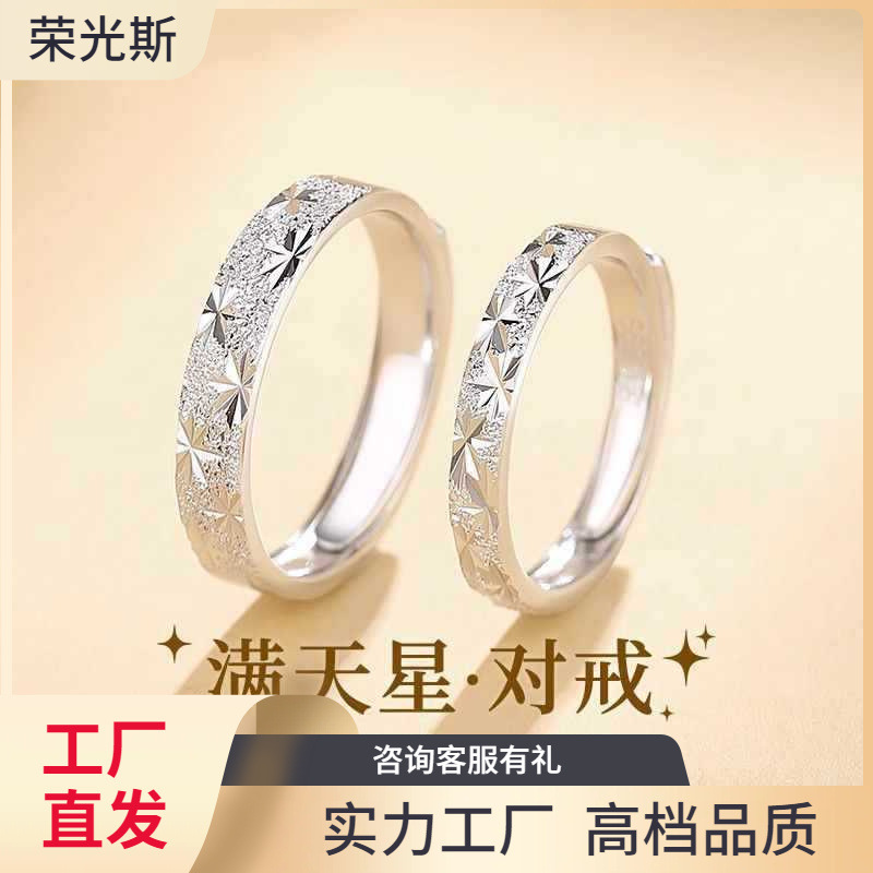 情侣对戒足银满天星纯银一对戒指生日七夕情人节礼物送男女友