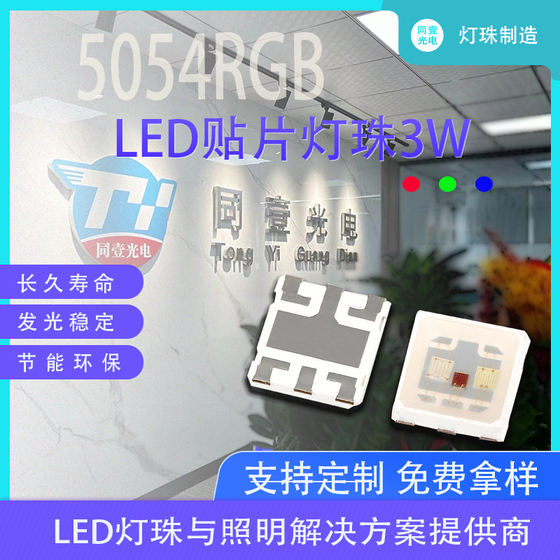 供应大功率5054RGB灯珠 红绿蓝三合一贴片灯珠 3W全彩水族馆灯珠