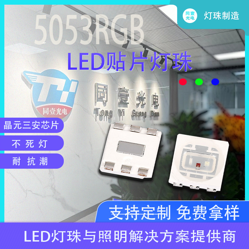厂家供应LED5053RGB灯珠发光二极管直插LED灯珠网红直播补光灯