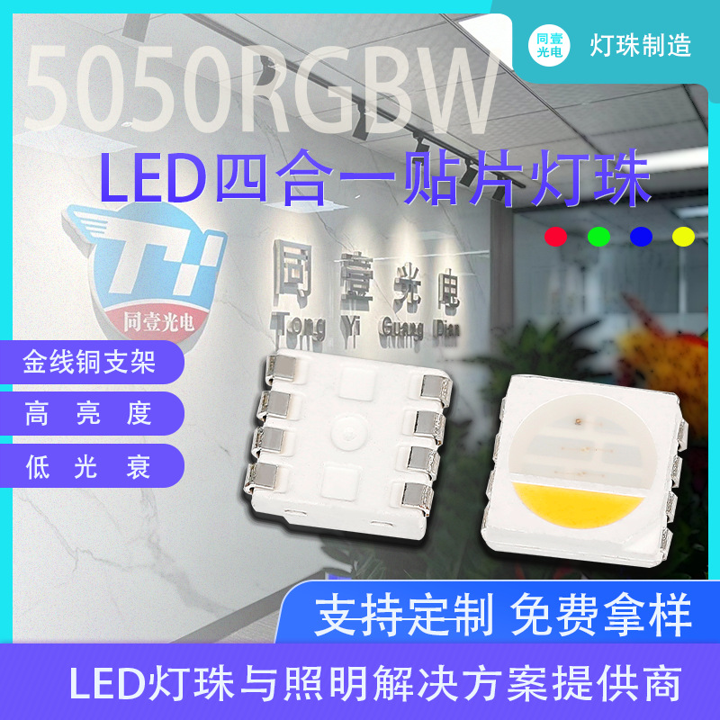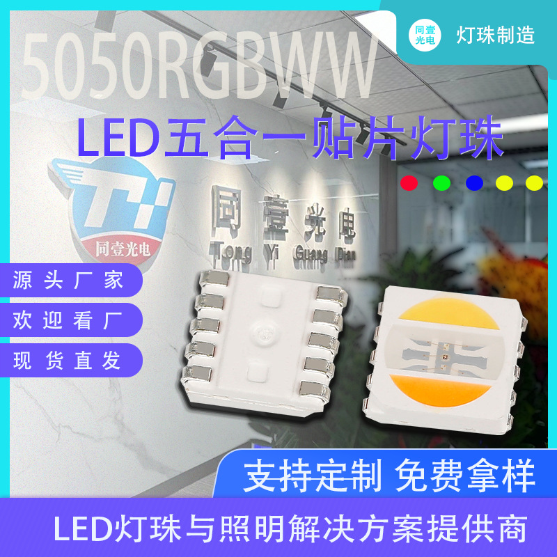 5050RGB五合一高亮全彩LED灯珠 红绿蓝正白暖白双色室内贴片灯珠
