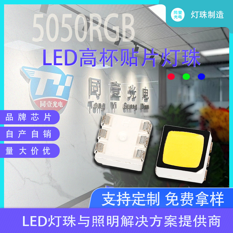 源头厂家5050高杯灯珠缺口正级负极七彩全彩5050RGB红绿蓝LED灯珠