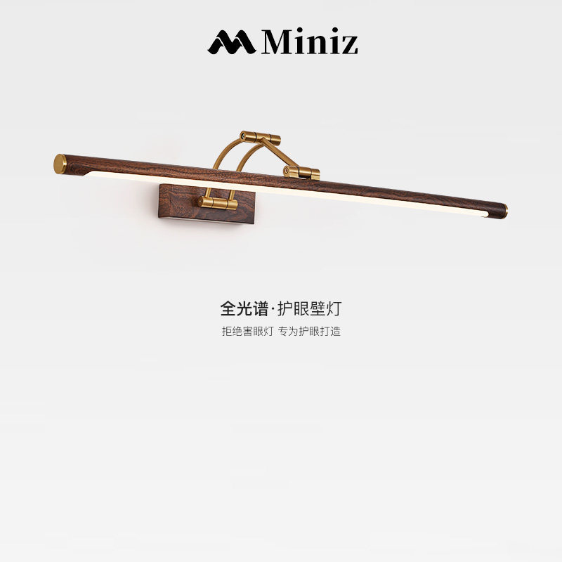 日式覆古浴柜镜前灯新中式胡桃木纹卧室房间一字长条壁灯化妆灯