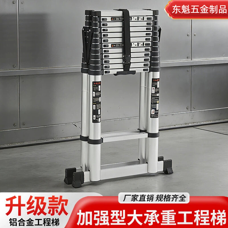 定制铝合金竹节梯便捷式工程梯多功能直梯家用折叠楼梯户外伸缩梯