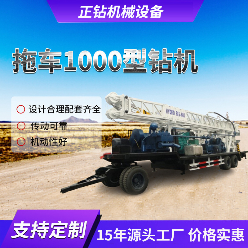拖车钻机牵引式深层地热井温泉车载式大口径1000型水汽两用钻机