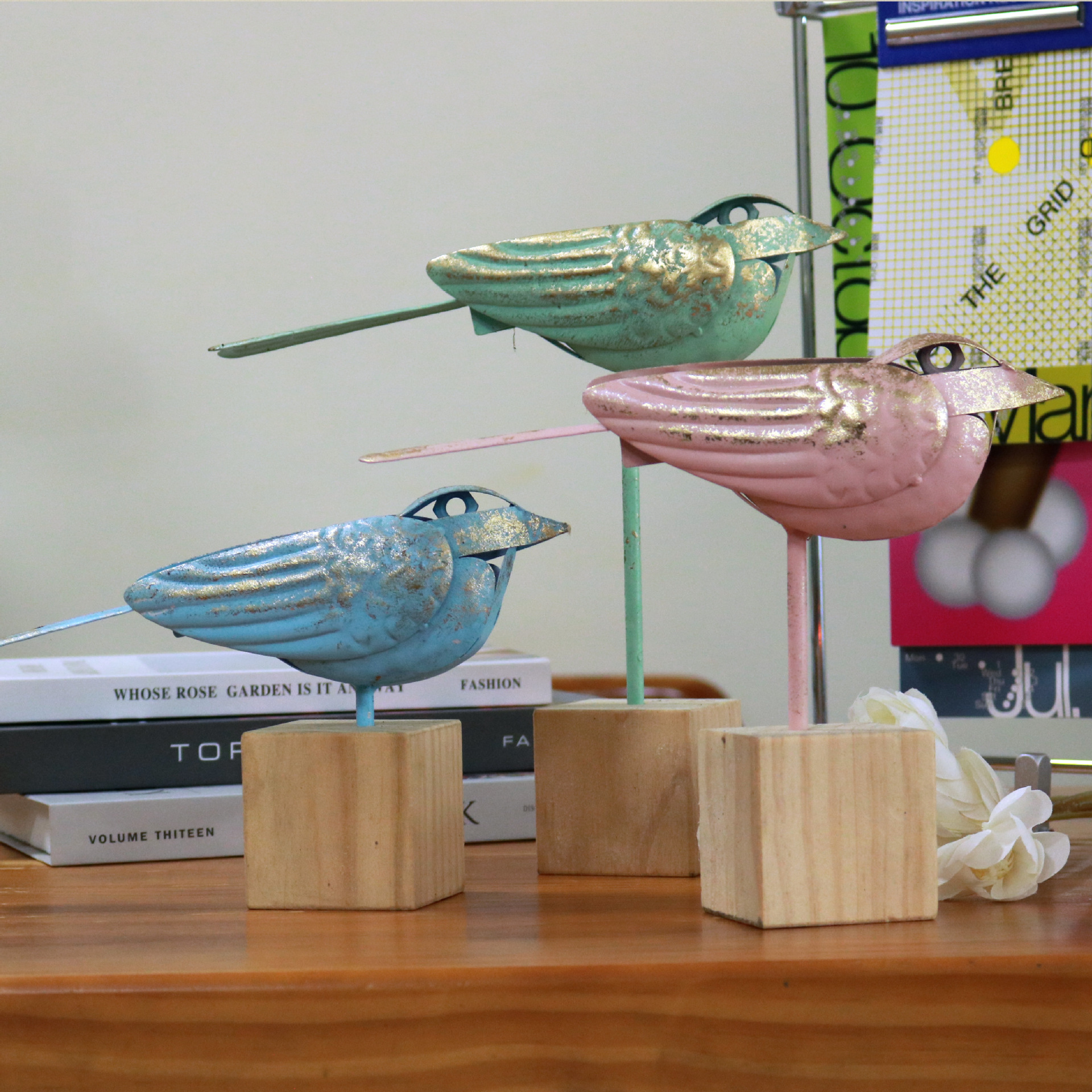 跨境摆件三只小鸟套装动物摄影道具工艺品家居美式乡村风户外室外
