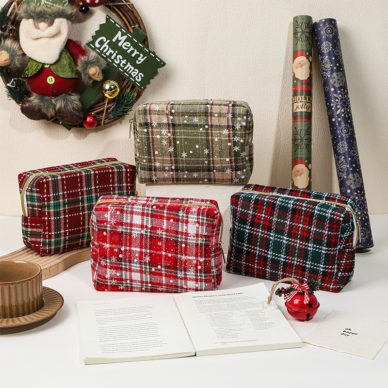 圣诞化妆包女红绿格纹大容量便携式外出旅游收纳口红化妆品收纳袋