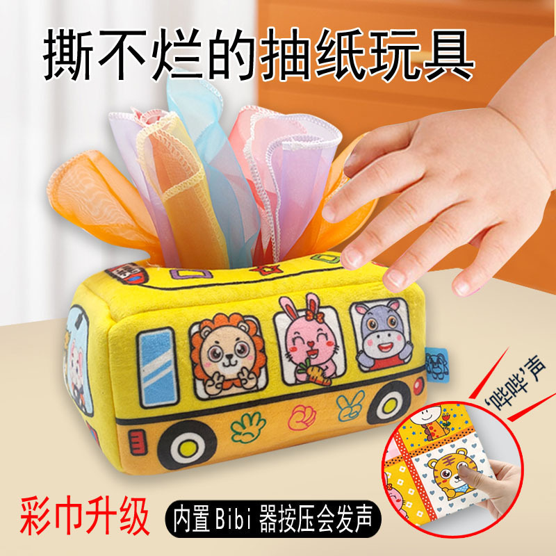 婴儿早教撕不烂纸巾盒抽纸巾玩具可水洗可啃咬新生宝宝益智抽抽乐