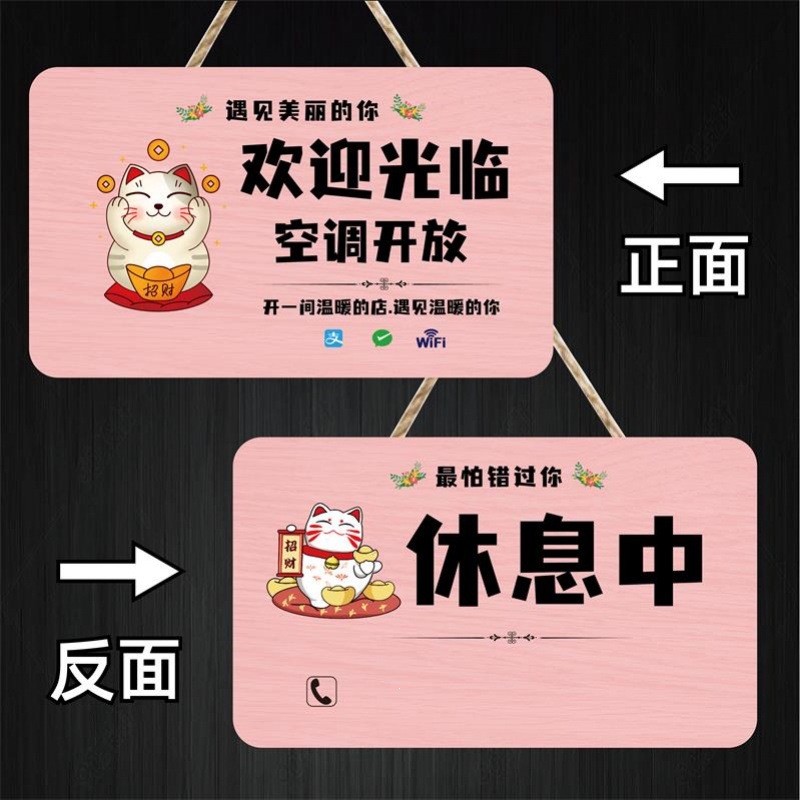 空调开放正在营业中挂牌双面休息有事外出接送孩子电话提示牌