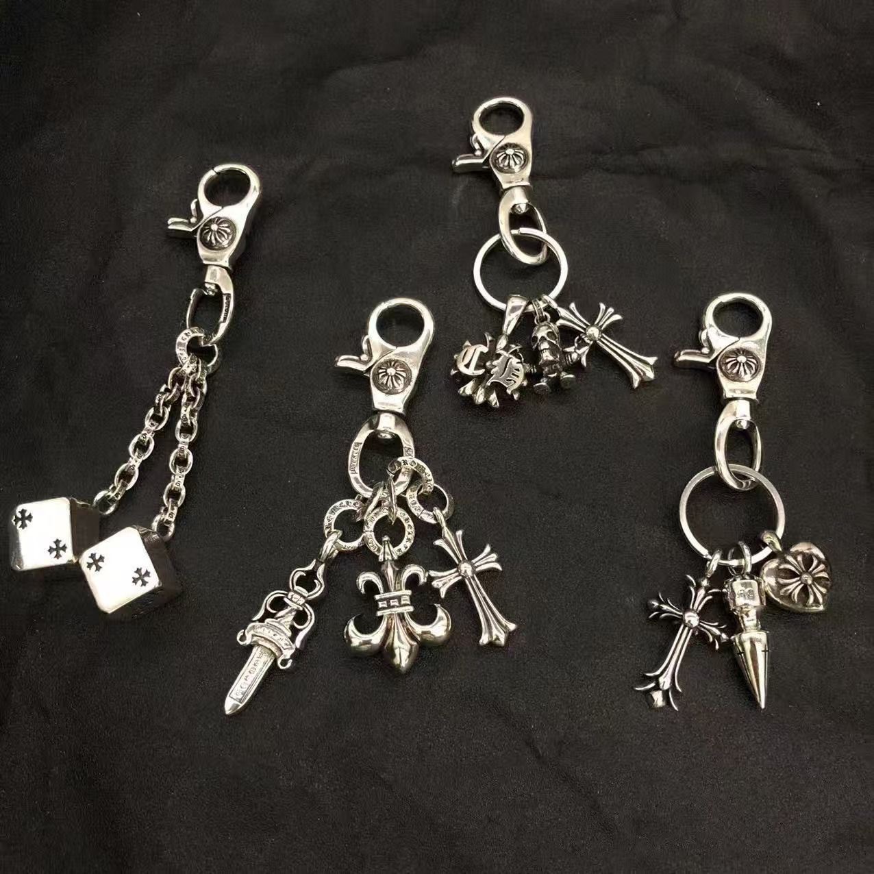 CH潮牌复古做旧十字花龙虾扣钥匙扣光面满花钥匙链挂件时尚个性