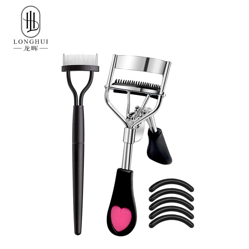 黑色带梳睫毛夹 桃心扇状广角边梳边夹 假睫毛辅助工具 美妆卷翘
