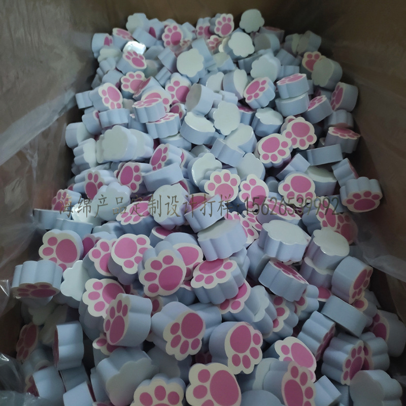 卡通图案粉红猫爪镜面海绵擦 鱼鳞镜面擦 清洁棉 按需印花定外形
