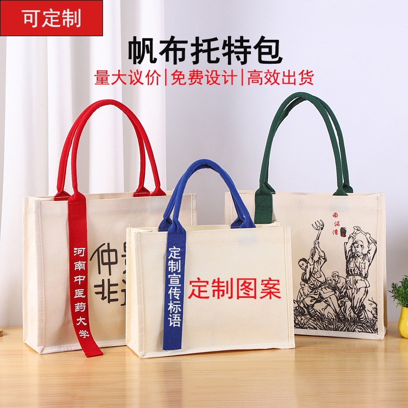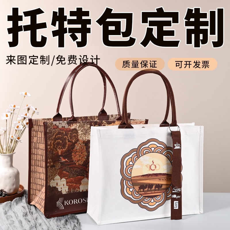 加厚覆膜帆布托特包定制大容量帆布袋企业银行学校礼品袋logo印刷