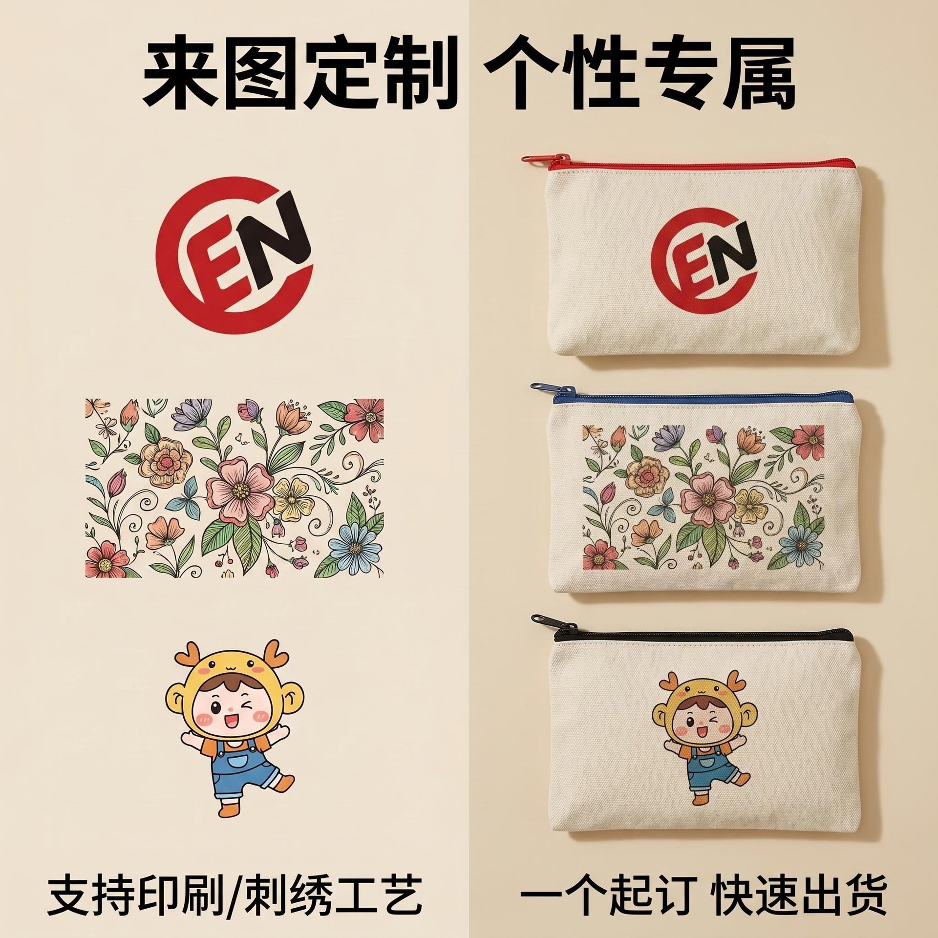 跨境空白帆布笔袋亚马逊跨境手拿拉链笔袋棉布袋学生女士化妆品包