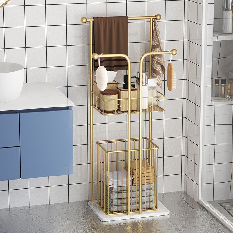 铁艺卫生间浴室浴缸边置物架落地轻奢岩板浴巾毛巾收纳架子脏衣篮