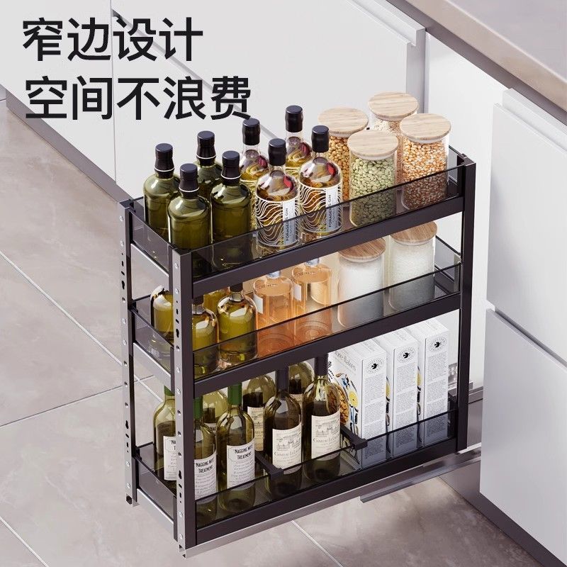 厨房抽拉置物架多功能收纳家用抽屉式分层调味品厨具储物夹缝架子