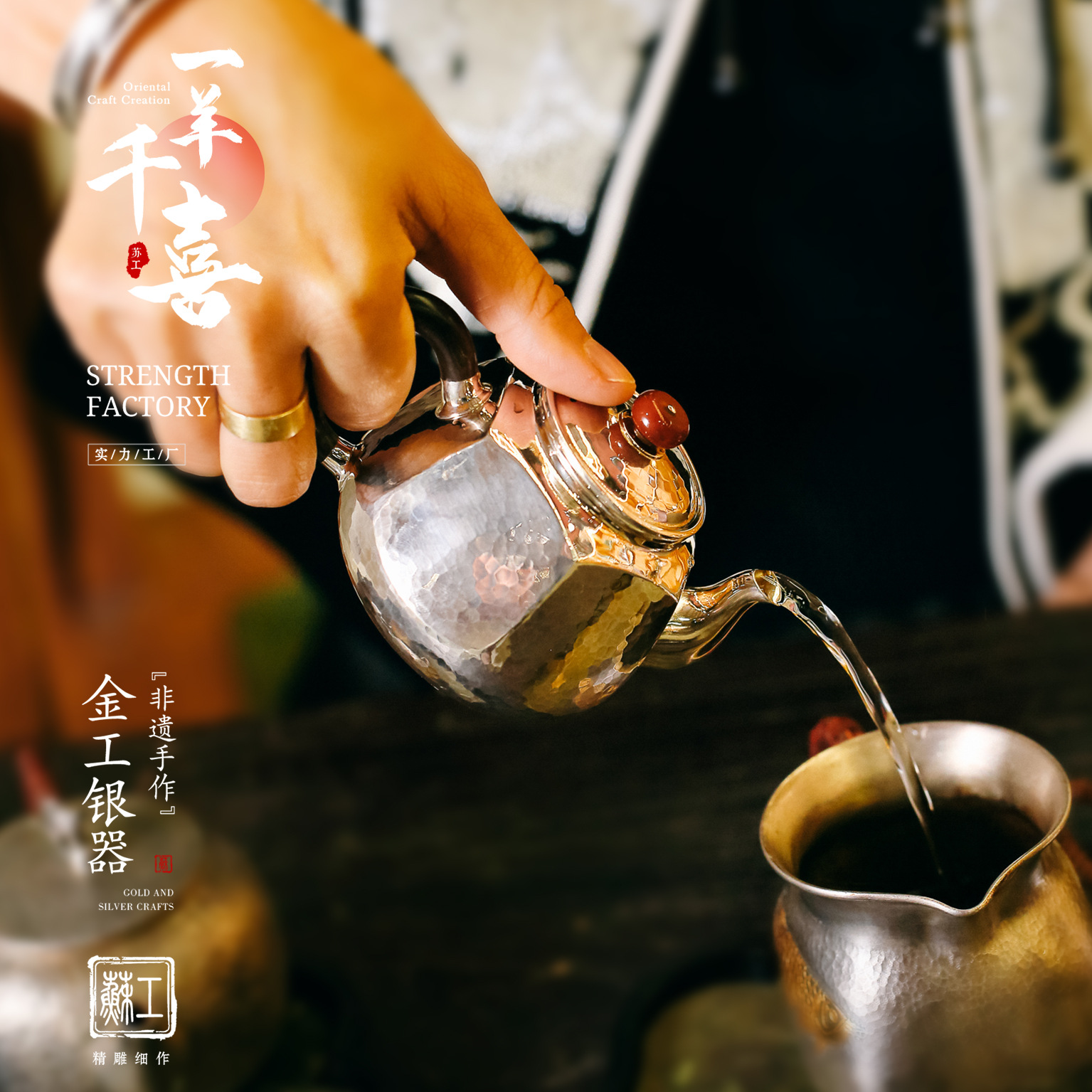 定制六方壶 银壶足银999烧水壶 纯手工煮水壶功夫茶具泡茶壶手作