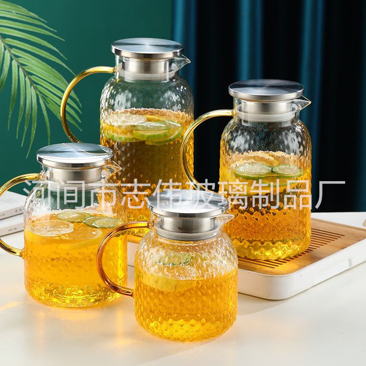 纯手工可定制批发米粒纹玻璃凉水壶钢盖多规格大容量玻璃果汁壶
