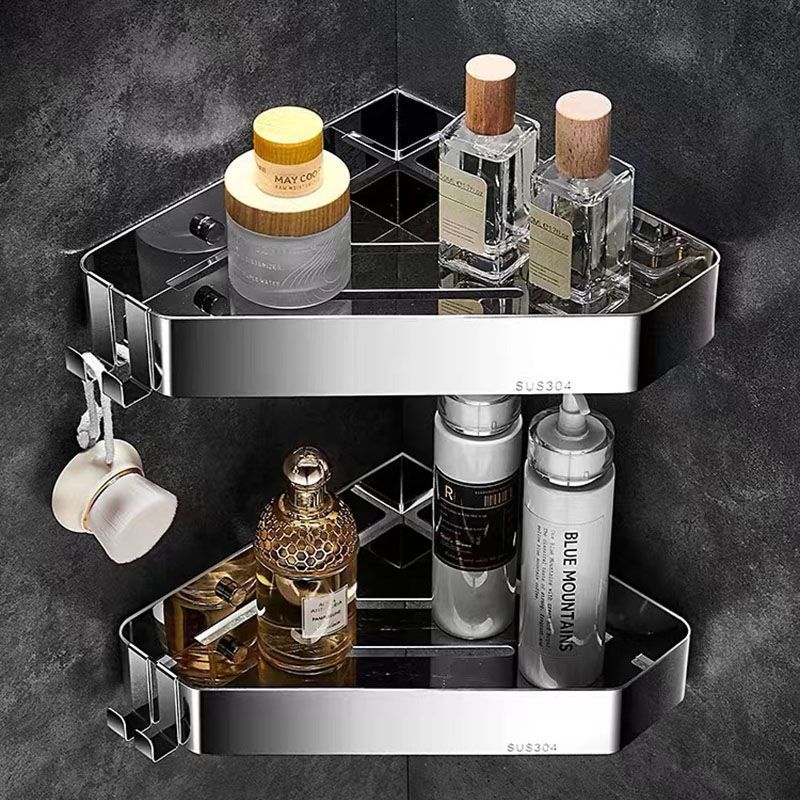 免打孔304不锈钢浴室金色置物架卫生间枪灰色三角篮转角厕壁挂