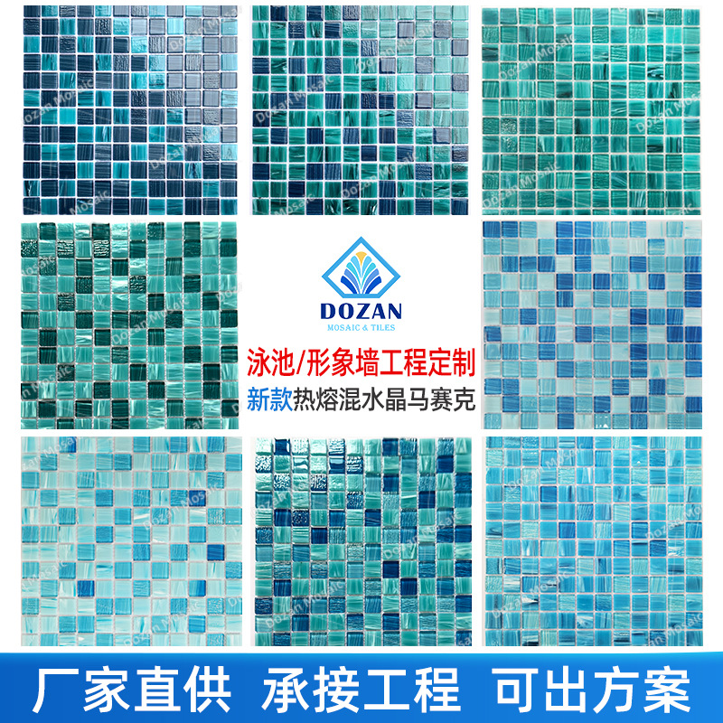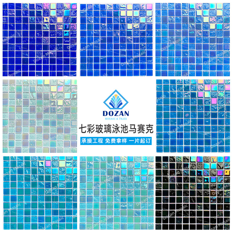 东展七彩玻璃泳池马赛克瓷砖水池景观池酒店会所游泳池玻璃贴片