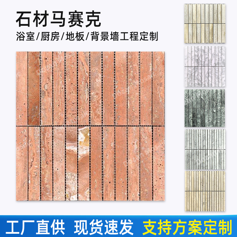 直销易清洁天然石材马赛克 防滑浴室背景墙 红洞石拼花艺术瓷砖