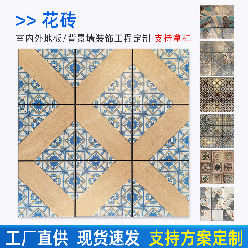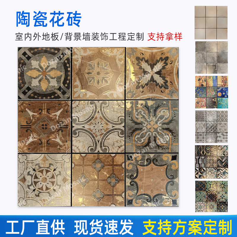 现货供应仿古鎏金花砖 家装阳台防滑专用小地砖 卫生间陶瓷砖