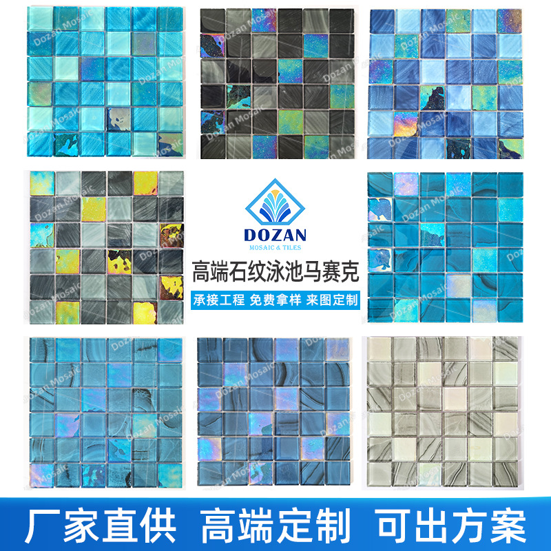 高端石纹玻璃泳池马赛克瓷砖定 制 厨房墙面酒店会所游泳池瓷砖