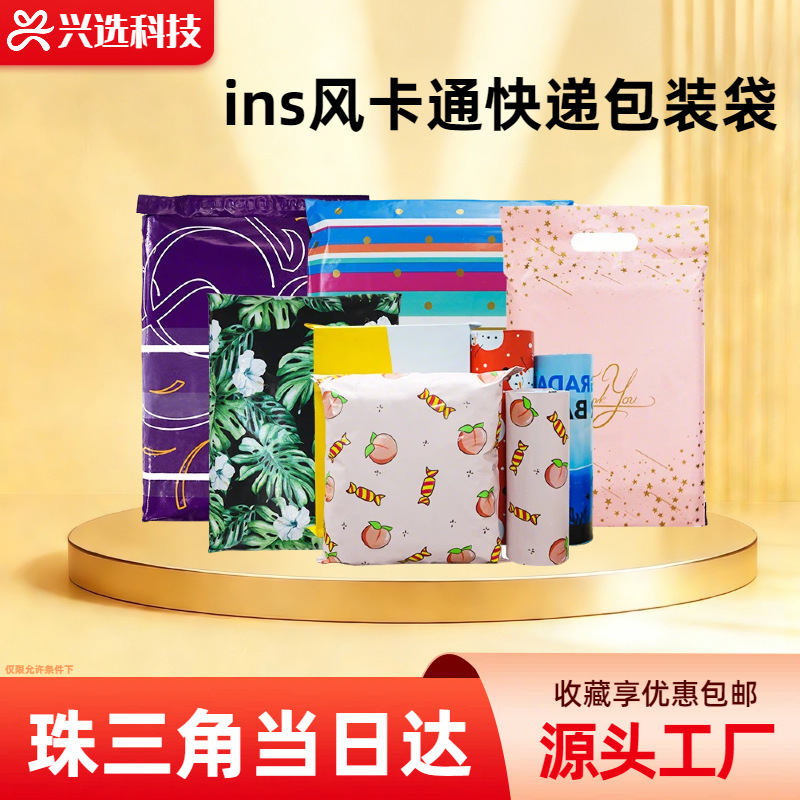 ins风卡通快递包装袋 快递袋定制LOGO颜色长条形全新料加厚打包袋