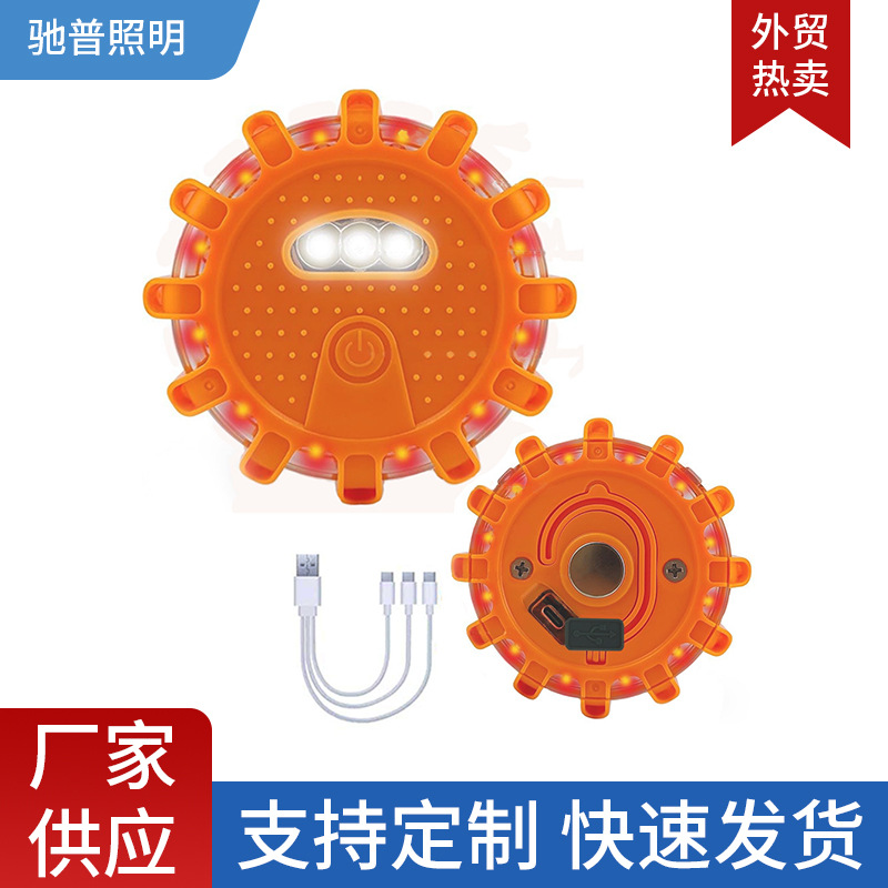 跨境源头厂家LED道路耀斑USB Type-C充电道路故障应急救援警示灯