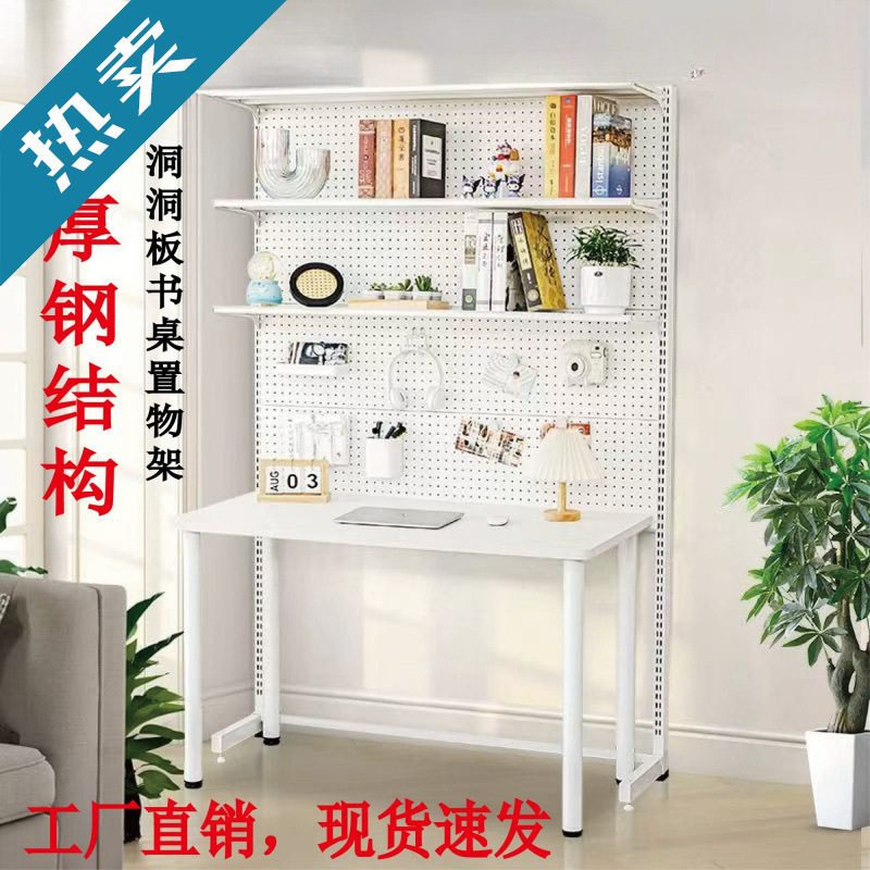 五金洞洞板立式网红书桌学生组合改装书柜落地置物架少女收纳书架