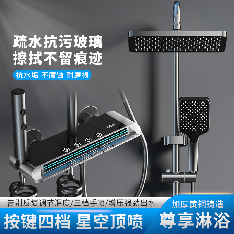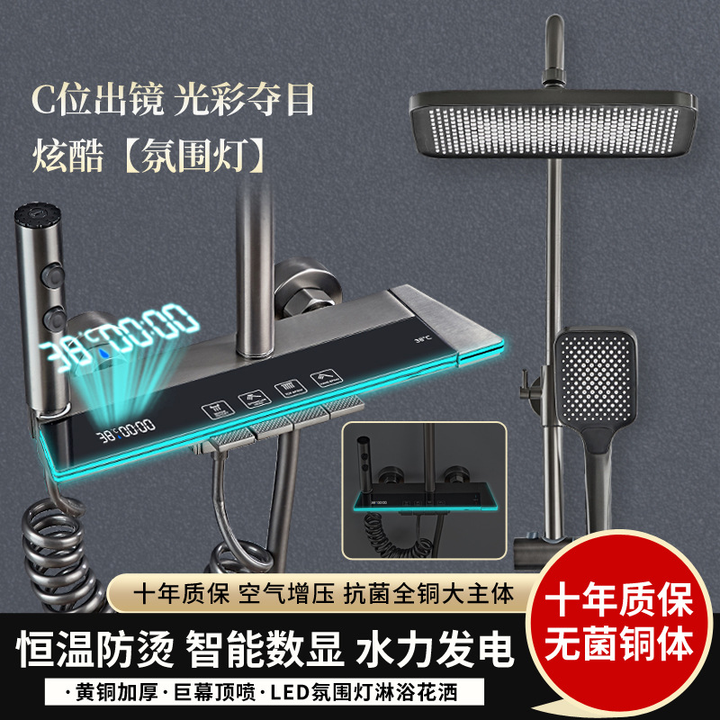数显套装氛围灯钢琴四挡厂家全铜淋浴花洒家用卫生沐浴恒温顶喷
