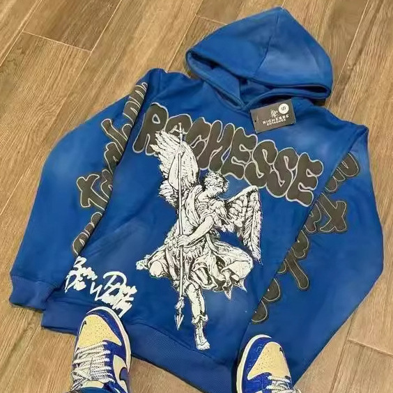 2026美式痞帅小众艺术蓝色男式上衣天使复古卫衣新外穿宽松套头连