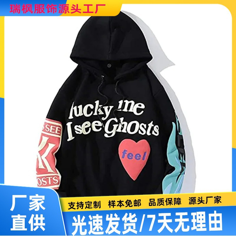 跨境亚马逊跨境春秋季加绒男士街头嘻哈白开水矿物质男士连帽卫衣