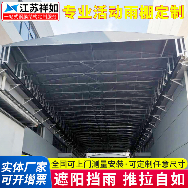 伸缩移动遮阳雨棚大型仓库户外篮球网球场折叠遮阳棚电动推拉雨棚