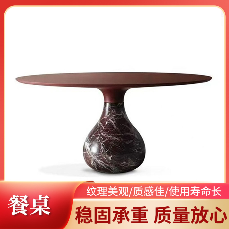 意式极简圆形餐桌家用小户型酒店包厢设计师餐台家具带转盘批发