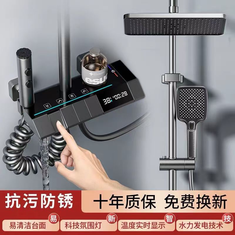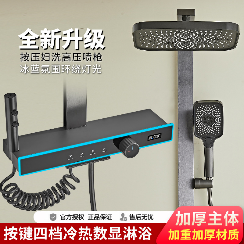 ✅全铜淋浴器花洒套装工厂批发恒温家用枪灰按键数显氛围灯增压花