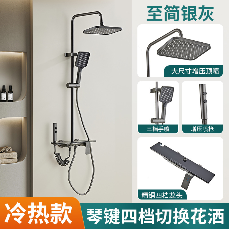 厂家特价批发水镀灰拉丝灰航母四挡一键一出水铜体淋浴花洒套装