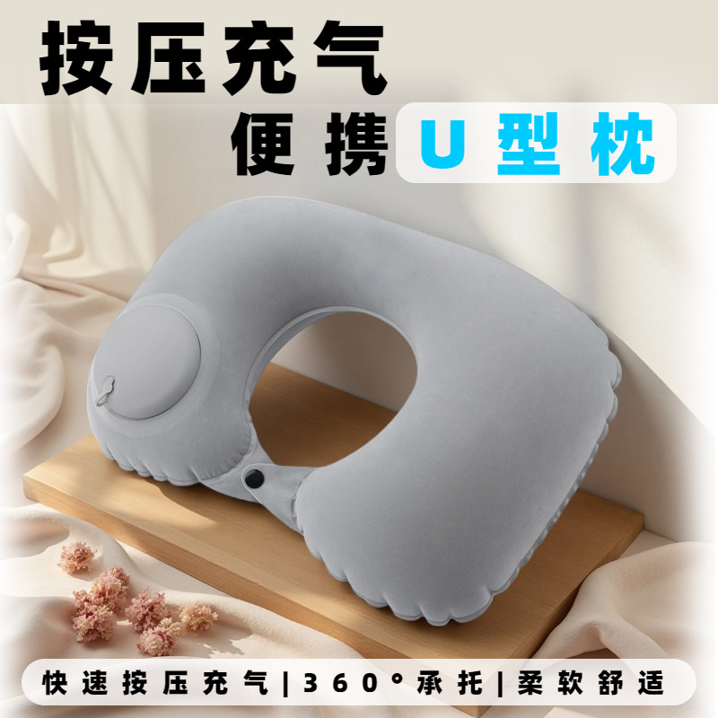 按压充气枕头便携u型旅行枕户外充气枕旅游神器折叠人体工学护枕