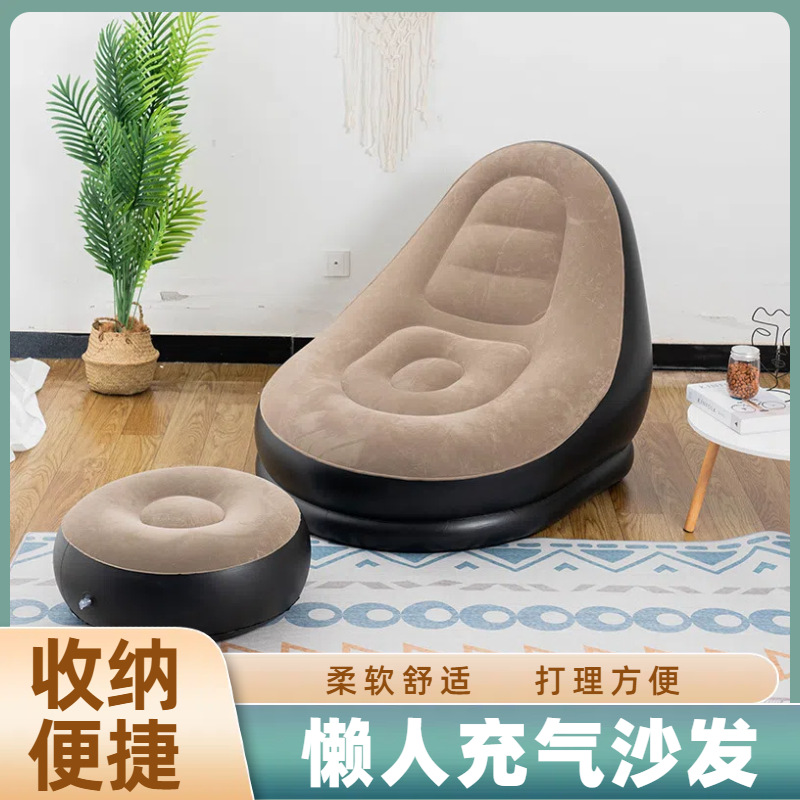 跨境热销加厚充气懒人沙发加脚蹬便携式室内户外野营可折叠躺椅