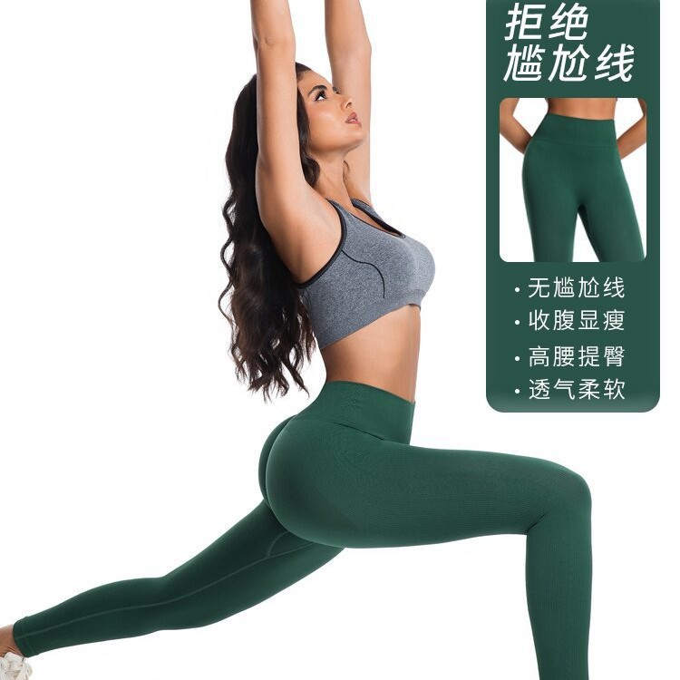 新款无缝高腰无尴尬线瑜伽裤美臀紧身跑步运动健身收腹提臀长裤女