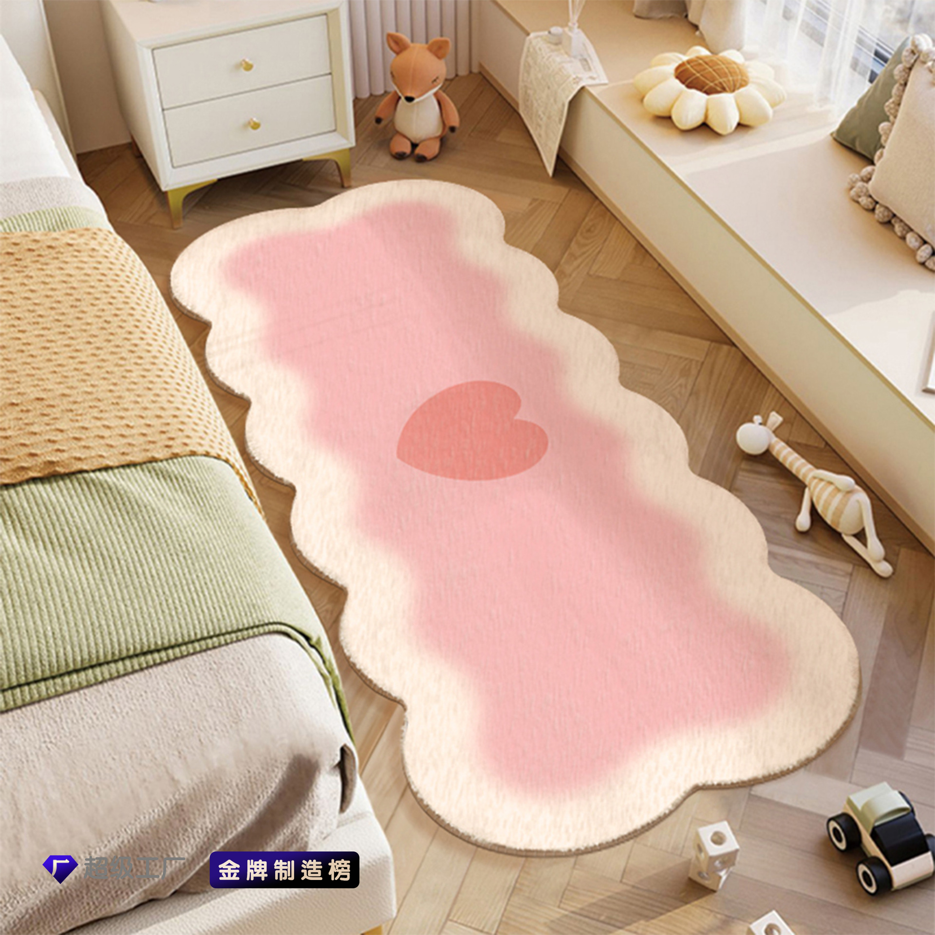 卧室床边毯家用卡通爱心少女儿童房床前房间地垫客厅沙发长条地毯